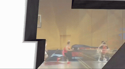 慢镜头回放显示,沈梓捷的运气是真的背,落地时右脚踩中了失去重心的特莱斯脚脖子上,再次出现了90°崴脚的伤情。
